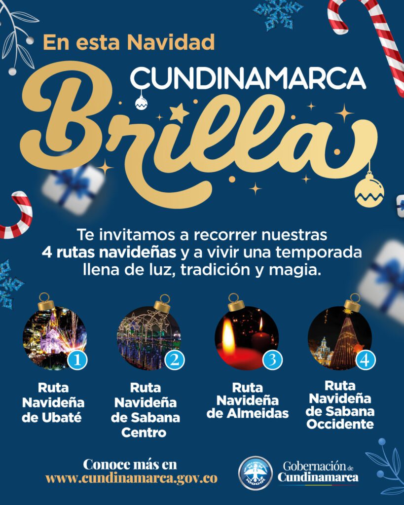 Este año, 116 municipios de Cundinamarca se visten de luz para ofrecerles una Navidad inolvidable. Se han preparado cuatro rutas de alumbrados, que los esperan para recorrer, disfrutar y maravillarse en cada destino.