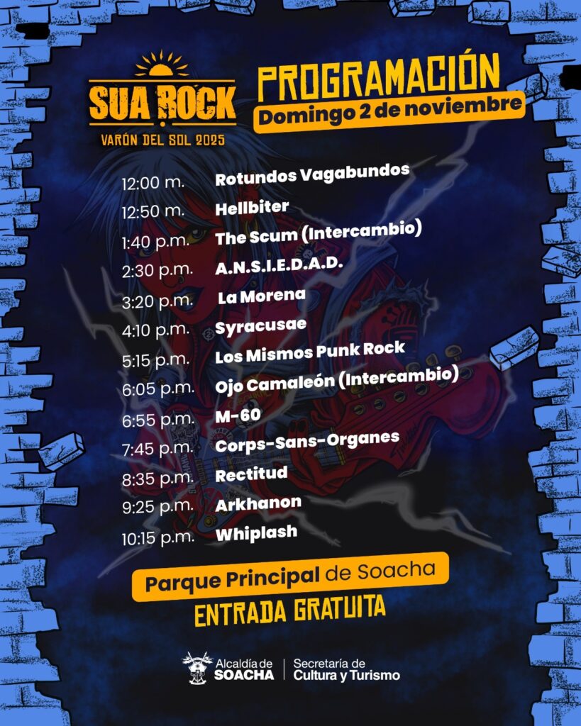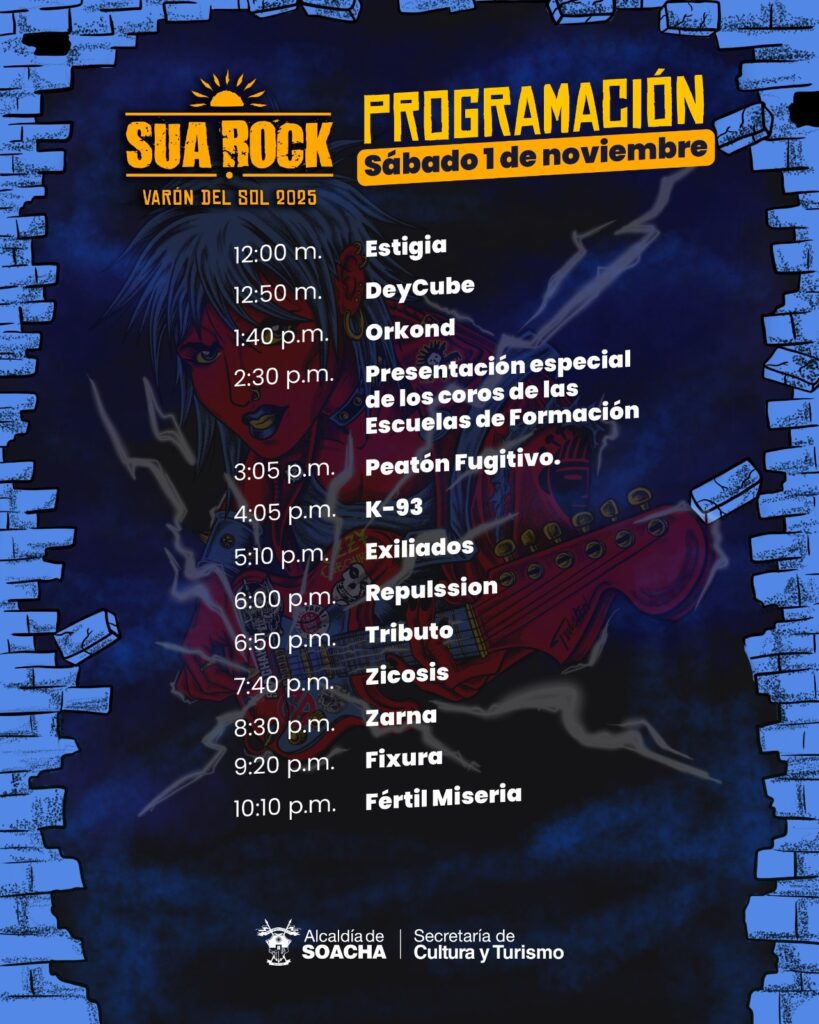 El Parque Principal de Soacha se prepara para recibir una nueva edición del Festival Sua Rock 2025, uno de los encuentros musicales más esperados por los amantes del rock y la cultura alternativa en la ciudad.
